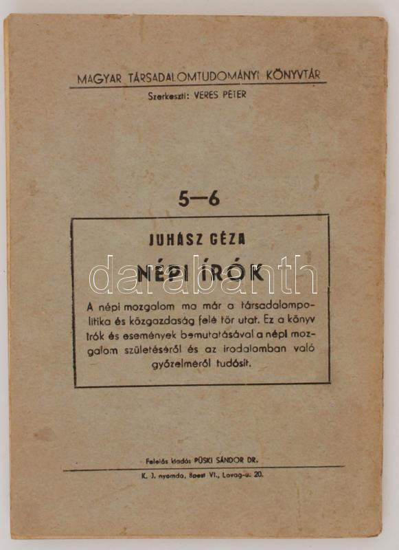 Juhász Géza: Népi írók. Budapest, 1943, Magyar Élet Kiadása. Kiadói pa... https://www.darabanth.com/de/229-Fernauktion/229.0/Andere-Sammelgebiete/Bucher-Sonstige-Raritaten~41/Juhasz-Geza-Nepi-irok-Budapest-1943-Magyar-Elet-Kiadasa-Kiadoi-papir-kotesben~II1025625