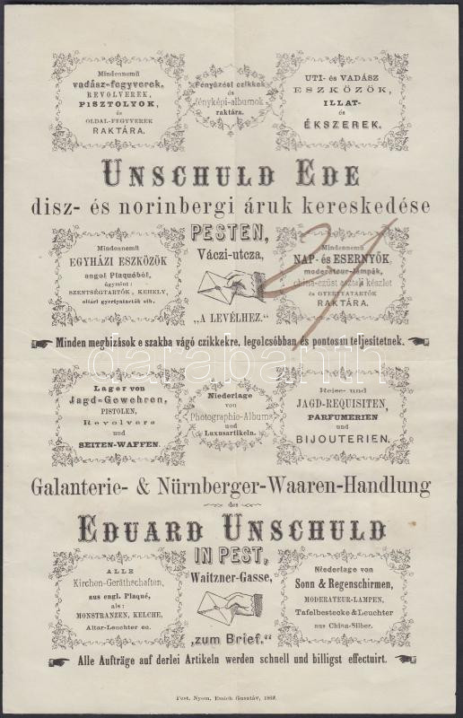 1868 Pest, Unschuld Ede dísz- és norinbergi áruk kereskedésének díszes... https://www.darabanth.com/de/229-Fernauktion/229.0/Andere-Sammelgebiete/Dokument~400432/1868-Pest-Unschuld-Ede-disz-es-norinbergi-aruk-kereskedesenek-diszes-fejleces-szamlaja~II1022784