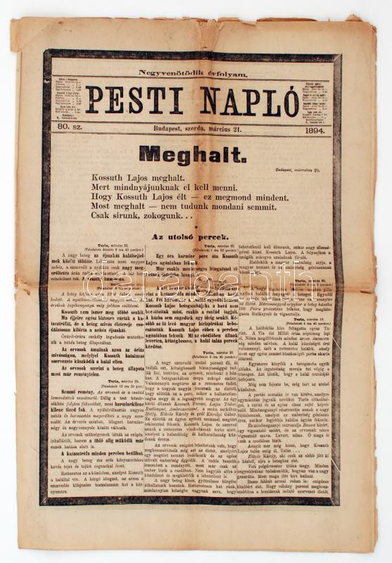 1894 a Pesti Napló március 21-i lapszáma Kossuth Lajos haláláról https://www.darabanth.com/de/229-Fernauktion/229.0/Andere-Sammelgebiete/Drucksachen~8/1894-a-Pesti-Naplo-marcius-21-i-lapszama-Kossuth-Lajos-halalarol~II1026520