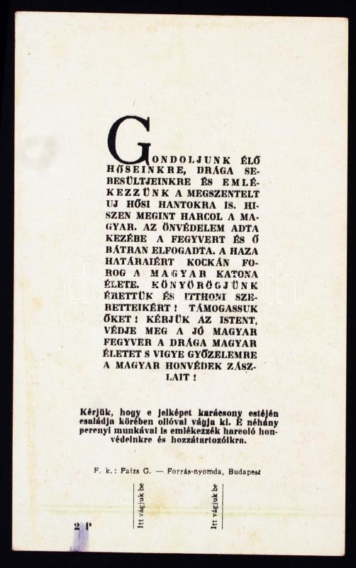 Beschreibung: 1942 "1942 karácsonya harcoló honvédeinké és hozzátartozóiké" feliratú háborús nyomtatvány
