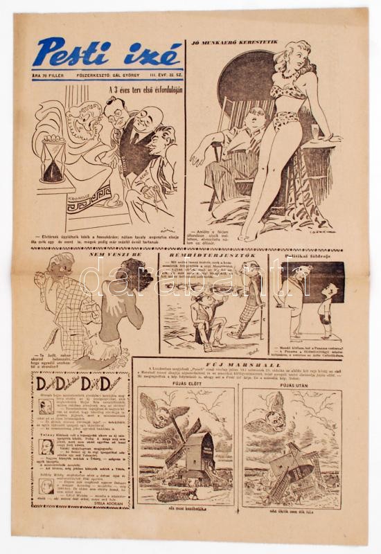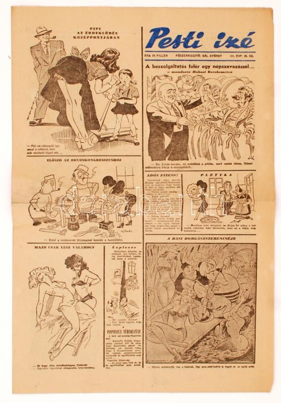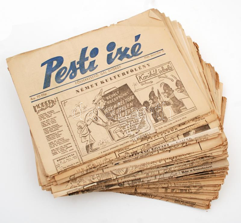 1946-48 Pesti Izé,főszerkesztő: Gál György, 75db, 1946/3,5, 1947/ 5-13, 15-52, 1948 6, 9, 12-13, 16-36, 41 (22 db számban kivágás)