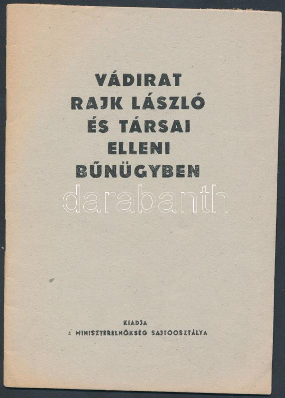 1949 Vádirat Rajk László és társai elleni bűnügyben. Kiadja a Miniszte... https://www.darabanth.com/de/229-Fernauktion/229.0/Andere-Sammelgebiete/Drucksachen~8/1949-Vadirat-Rajk-Laszlo-es-tarsai-elleni-bunugyben-Kiadja-a-Miniszterelnokseg-SajtoosztC3~II1006977
