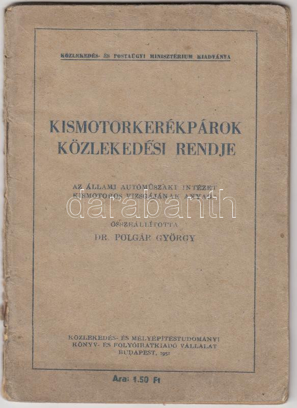 1951 Bp., Kismotorkerékpárok közlekedési rendje, az Állami Autóműszaki... https://www.darabanth.com/de/229-Fernauktion/229.0/Andere-Sammelgebiete/Drucksachen~8/1951-Bp-Kismotorkerekparok-kozlekedesi-rendje-az-Allami-Automuszaki-Intezet-kismotoros-vi~II1027909