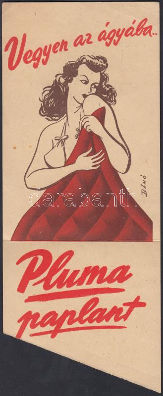 cca 1938-1948 Bp. IV-V., "Vegyen az ágyába...Pluma paplant" Bánó Endre... https://www.darabanth.com/de/229-Fernauktion/229.0/Andere-Sammelgebiete/Drucksachen~8/cca-1938-1948-Bp-IV-V-Vegyen-az-agyabaPluma-paplant-Bano-Endre-grafikus-altal-tervezett~II1023291