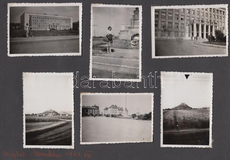 Beschreibung: 1943. augusztus, Kirándulás Ungvárra, Munkácsra, családi fotóalbum egy lapja, hat fotóval, 6x9 cm