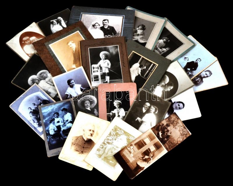 cca 1870-1910 Fotó tétel 21 különféle keményhátú fényképpel, különféle fotósoktól, bemutatva a kor divatját, fényképezkedési szokásait, vizitkártyánál nagyobb méretben / 21 vintage photos