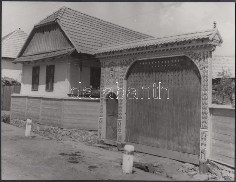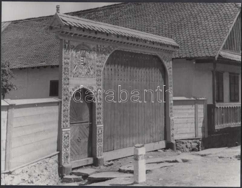 cca 1940 Székely kapu (ismeretlen helyszínen) magyar címerrel díszítve, két nézőpontból lefényképezve, korabeli negatívról készült későbbi nagyítások, 18x24 cm