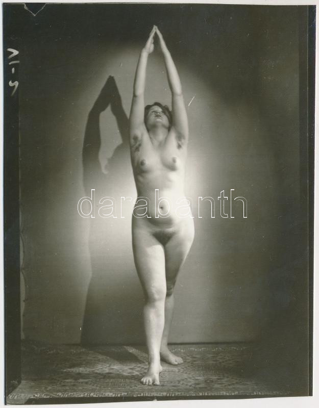 cca 1950 Demeter Károly (1892-1983) hagyatékában levő, síkfilm negatívról készült későbbi másolat, finoman erotikus jelzetlen fénykép, 11,5x9 cm /
