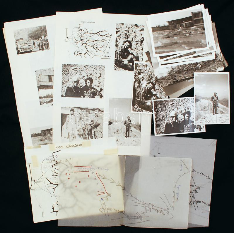 Beschreibung: cca 1970-1980 Sugár István hegymászó fotói törökországi expedíciójáról, útvonaltervekkel, a fotók negatívjaival, különféle méretben