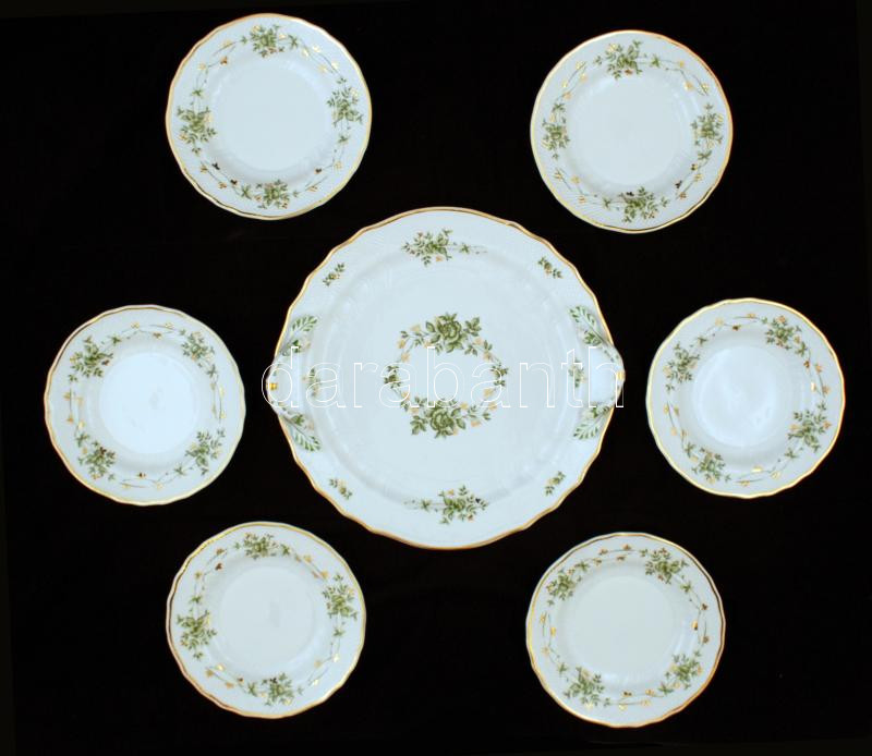 Beschreibung: Hollóházi süteményes készlet, matricás, jelzett hibátlan, d:19 és 32 cm