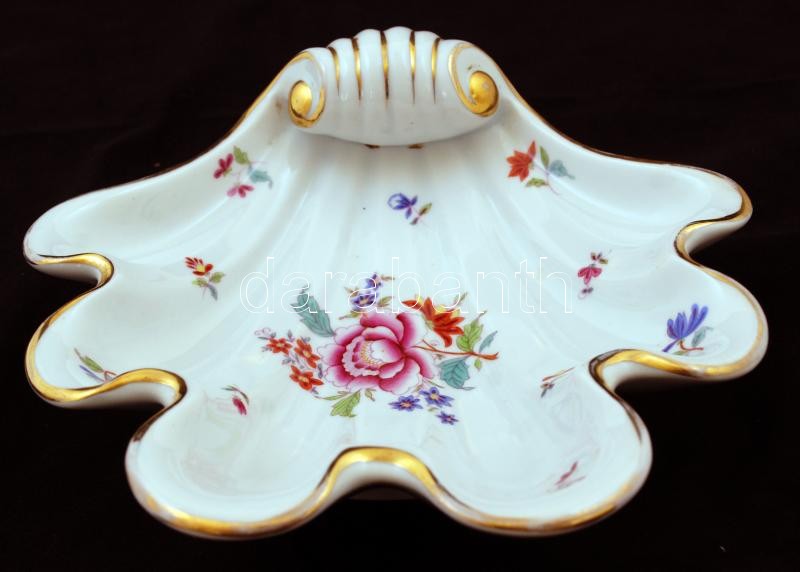 Beschreibung: Kagyló alakú virágmintás Herendi porcelán kínáló, kézzel festett, jelzett, kopásnyomokkal, 22,5×22 cm