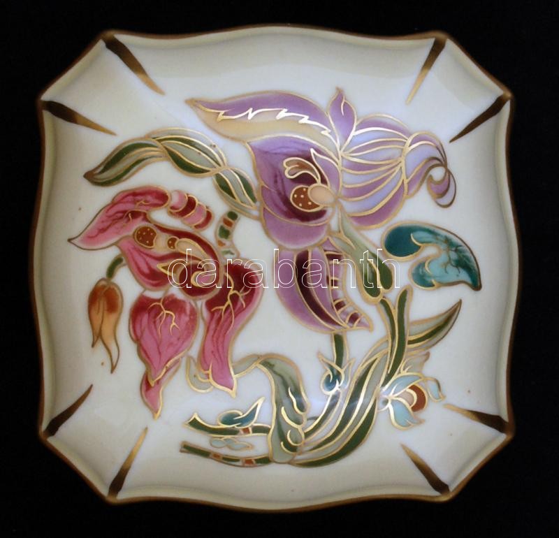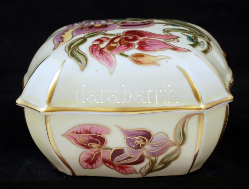 Beschreibung: Zsolnay virág mintás bonbonier, kézzel festett, jelzett, hibátlan, 11×11 cm / Handpainted numbered Zsolnay chinaware bonbonier