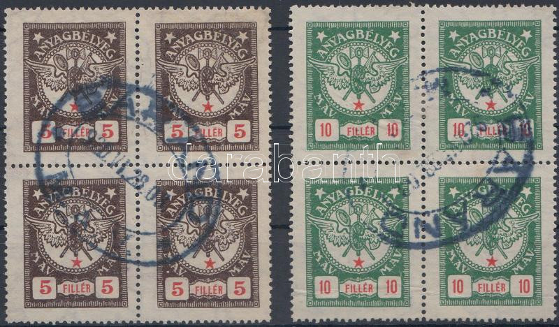 Beschreibung: 1920 MÁV 5f és 10f anyagbélyeg négyestömbök "BÁRÁND"