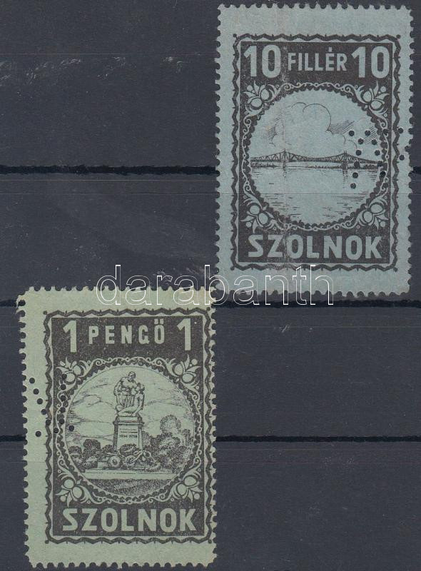 1930 Szolnok városi illetékbélyeg 10f, 1P "Sz.V." lyukasztással https://www.darabanth.com/de/229-Fernauktion/229.0/Andere-Sammelgebiete/Stempelmarken~25/1930-Szolnok-varosi-illetekbelyeg-10f-1P-SzV-lyukasztassal~II1028194