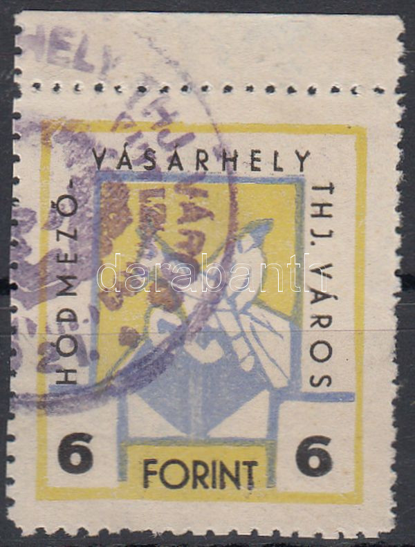 1947 Hódmezővásárhely városi illetékbélyeg 6Ft ívszéli, világoskék https://www.darabanth.com/de/229-Fernauktion/229.0/Andere-Sammelgebiete/Stempelmarken~25/1947-Hodmezovasarhely-varosi-illetekbelyeg-6Ft-ivszeli-vilagoskek~II1028236
