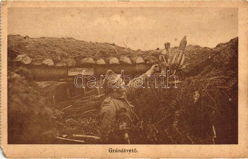 Gránátvető / WWI Hungarian military card, grenade launcher (EM) https://www.darabanth.com/de/229-Fernauktion/229.0/Ansichtskarten/Militaria~400407/Granatveto-WWI-Hungarian-military-card-grenade-launcher-EM~II1021468