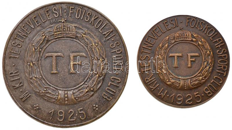 1938. "Magyar Királyi Testnevelési Főiskolai Sport Club 1925 / Csapat Bajnokság Női 1937/38 III. hely" Br díjérem "LUDVIG BP" gyártói jelzéssel (30mm) + 1940. "Magyar Királyi Testnevelési Főiskolai Sport Club 1925 / Csapat Bajnokság 1940 I. hely" ezüstözött Br díjérem, "LUDVIG" gyártói jelzéssel (40mm) T:2,2-