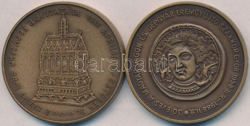 Bognár György (1944-) 1988. "30 éves a Magyar Vagon és Gépgyár Éremgyűjtő Szakkör Győr" Br emlékérem (42,5mm) + Bognár György (1944-) 1988. "MÉE - Államalapító királyunk emlékére / A Szent Jobb országos bemutatása" Br emlékérem (42,5mm) T:1,1-