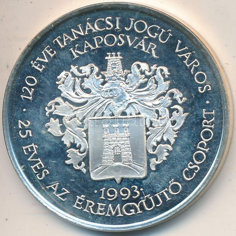 Fritz Mihály (1947-) 1993. "120 éve tanácsi jogú város Kaposvár - 25 éves az Éremgyűjtő Csoport / Kelta Oppidum és verde - Szalacska" Ag emlékérem (35.71g/0.835/42,5mm) T:PP