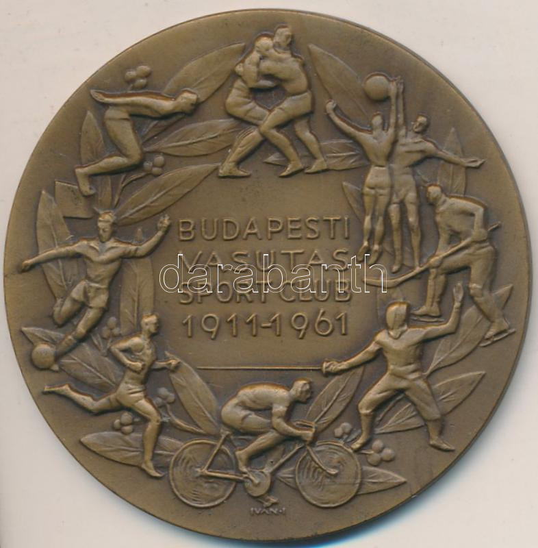 Iván István (1905-1968) 1961. "Budapesti Vasutas Sport Club 1911-1961"... https://www.darabanth.com/de/229-Fernauktion/229.0/Numismatik/Ungarische-Edelmetall-Gedenkmunzen~56/Ivan-Istvan-1905-1968-1961-Budapesti-Vasutas-Sport-Club-1911-1961-Br-emlekerem-tokban-70mm~II1021558