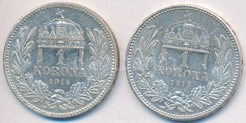 1915KB 1K Ag "Ferenc József" (2x) T:2,2- https://www.darabanth.com/de/229-Fernauktion/229.0/Numismatik/Ungarische-Munzen~55/1915KB-1K-Ag-Ferenc-Jozsef-2x-T2-2-~II1026884