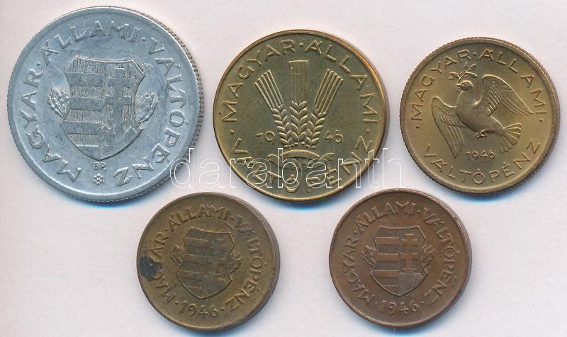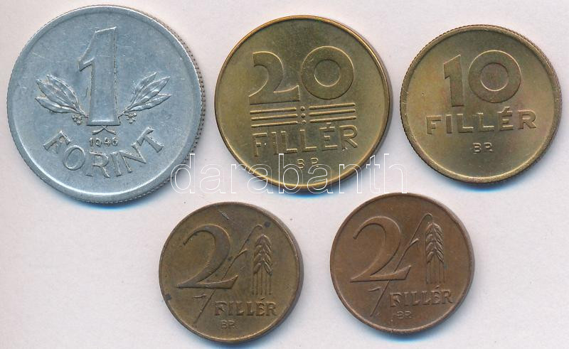 1946. 2f Tombak (2x) + 10f Tombak + 20f Cu-Al + 1Ft Al T:1,1-,2,2- https://www.darabanth.com/de/229-Fernauktion/229.0/Numismatik/Ungarische-Munzen~55/1946-2f-Tombak-2x-plus-10f-Tombak-plus-20f-Cu-Al-plus-1Ft-Al-T1-1-2-2-~II1025714