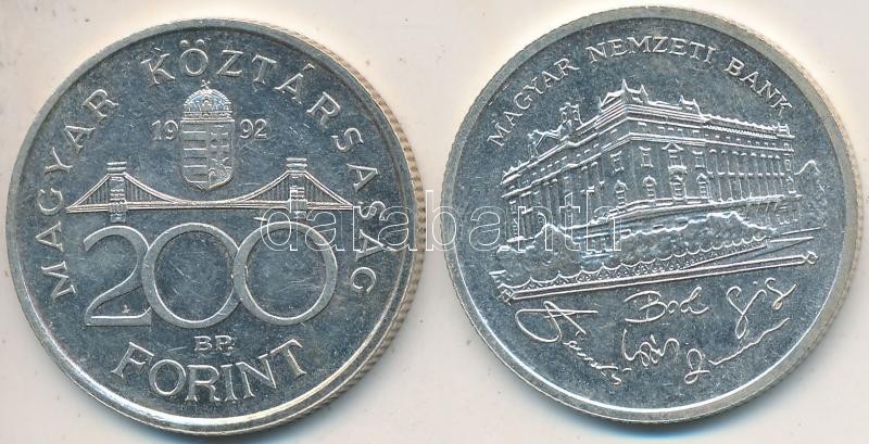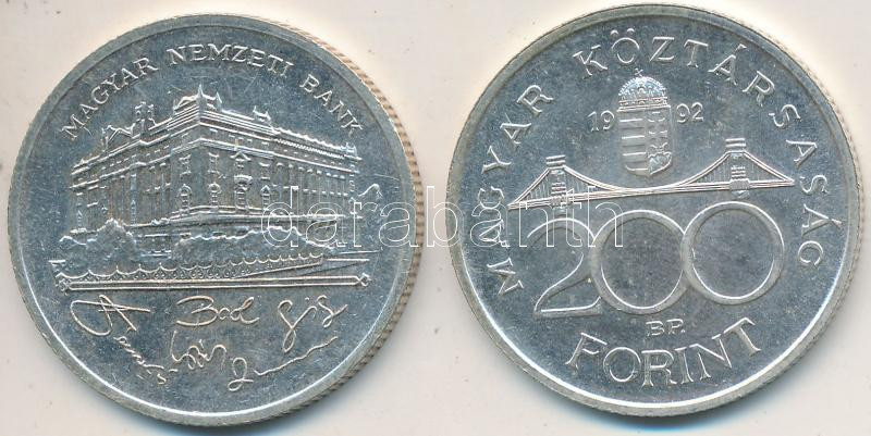 Beschreibung: 1992. 200Ft Ag "MNB" (2x) T:2,2-