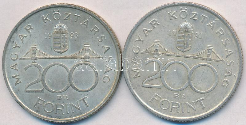 Beschreibung: 1993. 200Ft Ag "MNB" (2x) T:2,2-
