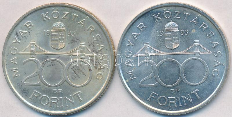 Beschreibung: 1993. 200Ft Ag "MNB" (2x) T:2,2-
