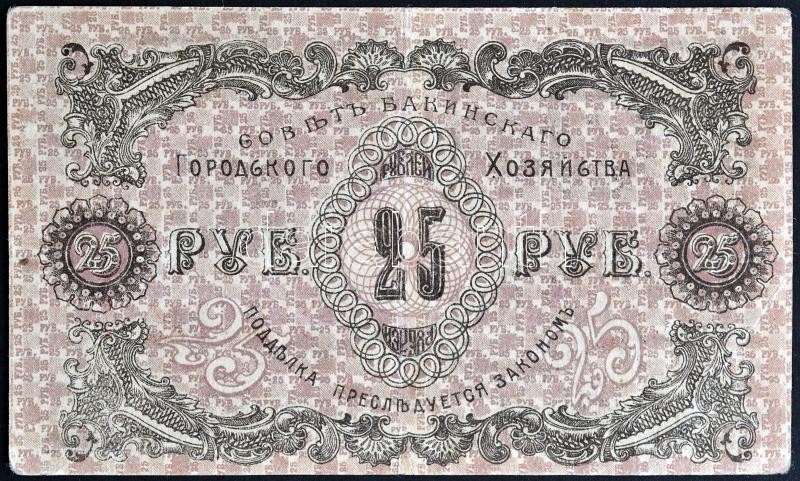 Russian Socialist Federated Soviet Republic / Transcaucasia / Azerbaijan 1918. 25 Rubles C:F