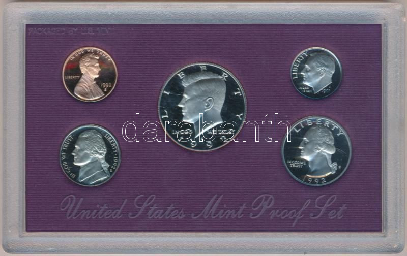 Amerikai Egyesült Államok 1992. 1c-1/2$ (5xklf) forgalmi szett dísztokban tanúsítvánnyal T:PP