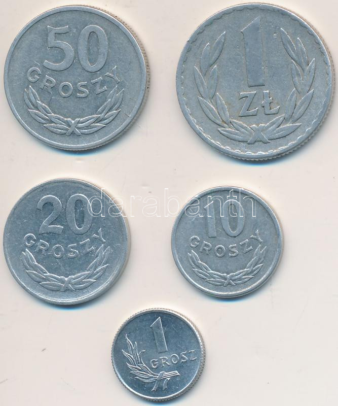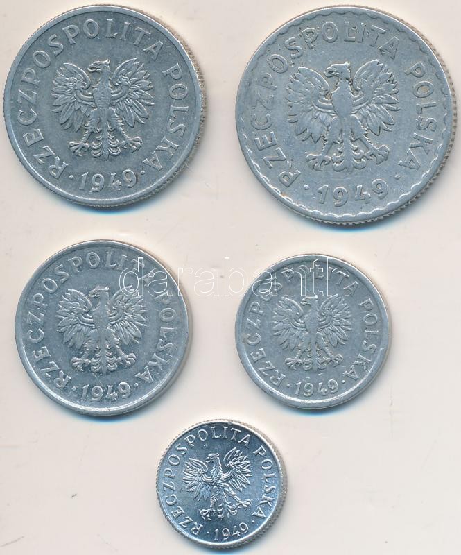 Beschreibung: Lengyelország 1949. 1gr Al + 10gr Al + 20gr Al + 50gr Al + 1Zl Al T:2,2-