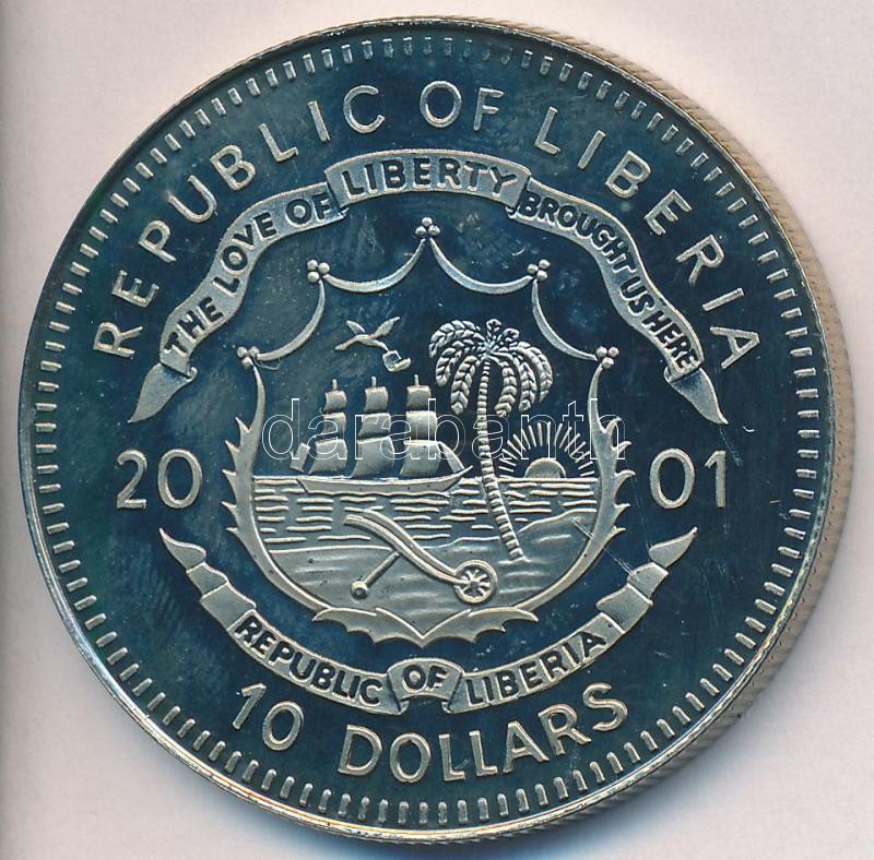 Liberia 2001. 10 Dollars "Moments of Freedom- End of Christian Persecution" multicolor C:PP fingerprint