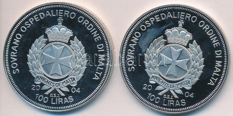 Sovereign Order of Malta 2004. 100 Liras (2x) "Portugal in the EU" + "Spain in the EU" C:PP sligthly scratched, fingerprint