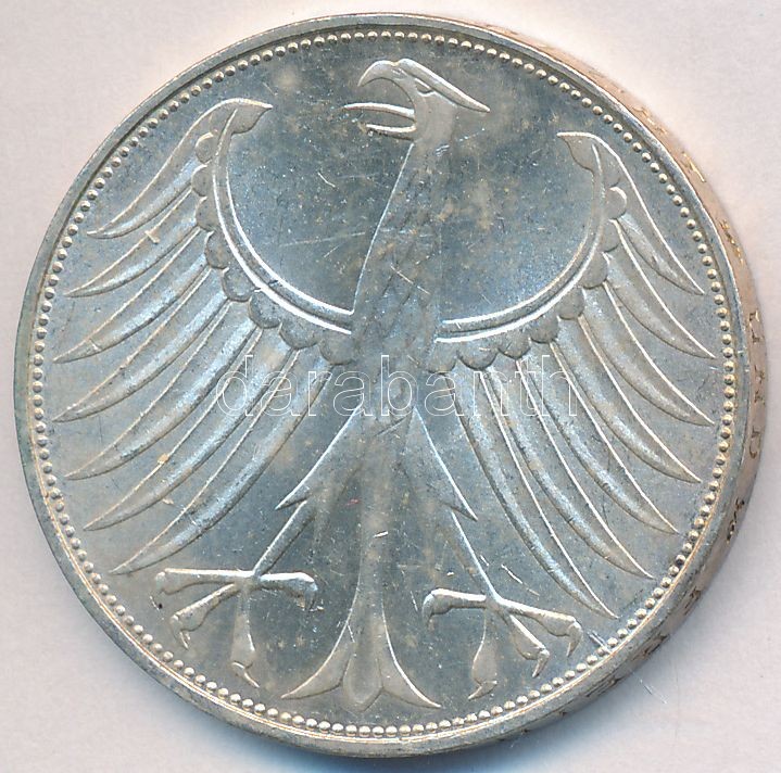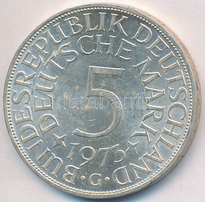 FRG 1973G 5 Mark Ag C:XF,VF scratched https://www.darabanth.com/de/229-Fernauktion/229.0/Numismatik/Weltweit-Munzen~59/NSZK-1973G-5M-Ag-T2-2-karc-3Cbr3EFRG-1973G-5-Mark-Ag-CXF-VF-scratched~II1021540