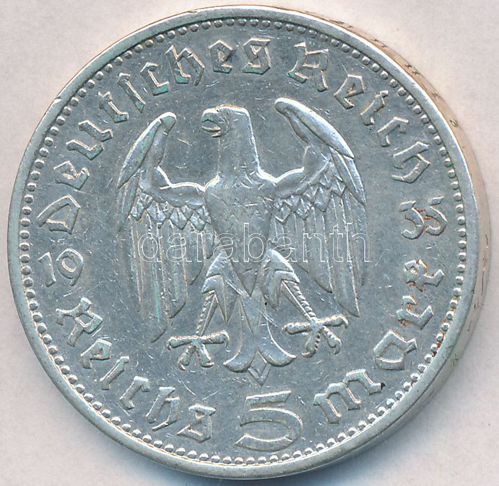 German Third Reich 193... https://www.darabanth.com/de/229-Fernauktion/229.0/Numismatik/Weltweit-Munzen~59/Nemet-3-Birodalom-1935G-5M-Ag-Hindenburg-T2-3Cbr3EGerman-Third-Reich-1935G-5-Marks-Ag-Hindenbur~II1023968