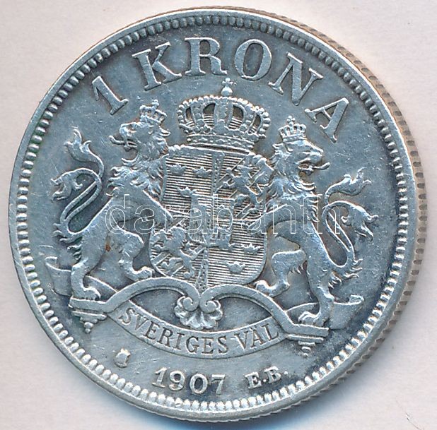 Sweden 1907. 1 Krona Ag "Osca... https://www.darabanth.com/de/229-Fernauktion/229.0/Numismatik/Weltweit-Munzen~59/Svedorszag-1907-1Kr-Ag-II-Oszkar-T3-3Cbr3ESweden-1907-1-Krona-Ag-Oscar-II-CF~II1022219