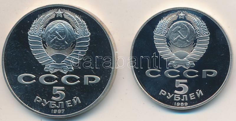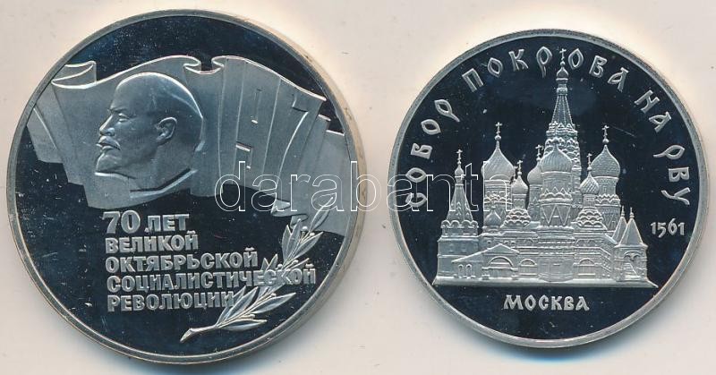 Szovjetunió 1987. 5R Cu-Ni "Bolsevik Forradalom 70. évfordulója" + 1989. 5R Cu-Ni "Boldog Vazul-székesegyház" mindkettő nem a saját dísztokjában T:PP