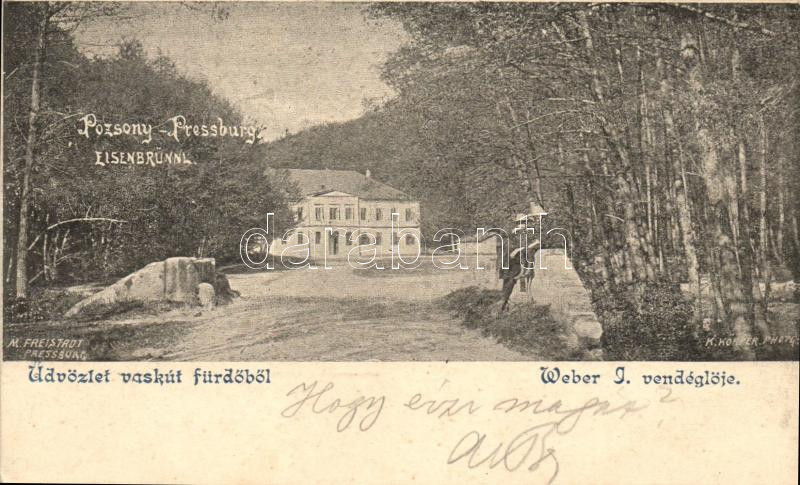 1898 Pozsony, Pressburg, Bratislava; Vaskút-fürdő, Weber I. vendéglője... https://www.darabanth.com/de/23-Gross-Auktion/23.1/Ansichtskarten-Ungarn/Slowakei~9035/1898-Pozsony-Pressburg-Bratislava-Vaskut-furdo-Weber-I-vendegloje-K-Korper-fotoja-re~II1203925