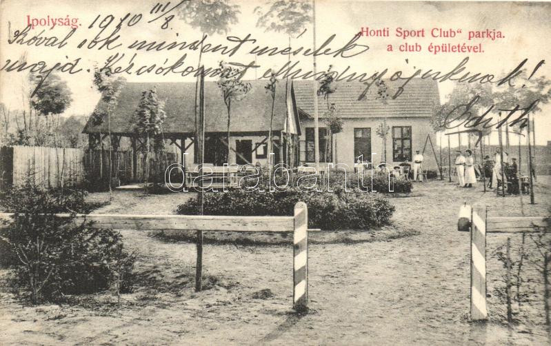 Ipolyság, Honti Sport Club parkja, klubépület / sport club (Rb) https://www.darabanth.com/de/23-Gross-Auktion/23.1/Ansichtskarten-Ungarn/Slowakei~9035/Ipolysag-Honti-Sport-Club-parkja-klubepulet-sport-club-Rb~II1200819