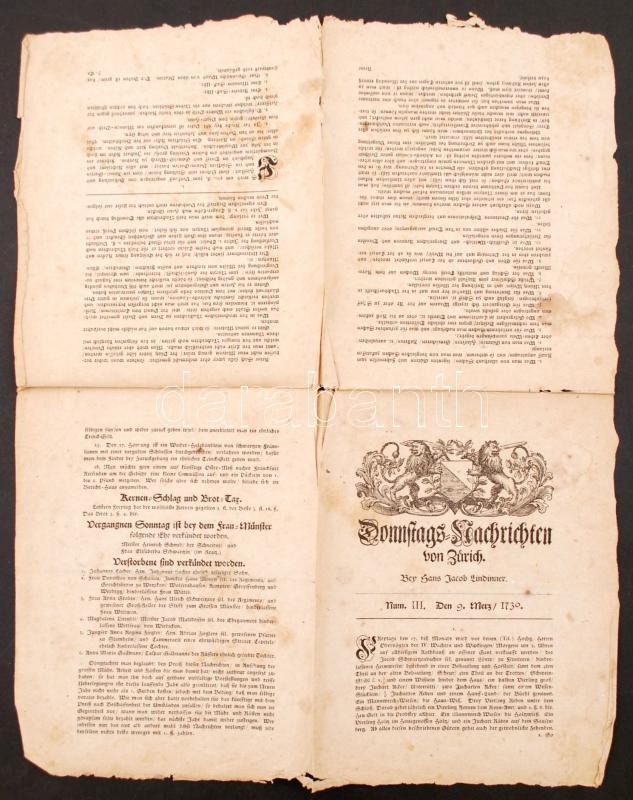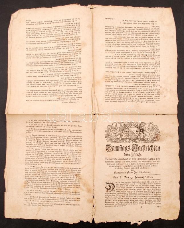 1730 Sonntags Nachrichten 8 oldalas svájci napilap. / Swiss daily news... https://www.darabanth.com/de/23-Gross-Auktion/23.1/Kunst-Dokumente/Drucksachen~9234/1730-Sonntags-Nachrichten-8-oldalas-svajci-napilap-Swiss-daily-newspaper-8p~II1203788