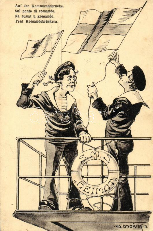 Auf der Kommandobrücke..., SMS Heimat / WWI K.u.K. Navy, marine humour... https://www.darabanth.com/de/23-Gross-Auktion/23.1/Thematik-und-Kunstlerkarten/Kriegsschiffe~9078/Auf-der-Kommandobrucke-SMS-Heimat-WWI-KuK-Navy-marine-humour-s-Ed-Dworak~II1206542