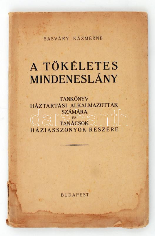 Sasváry Kázmérné: A tökéletes mindeneslány. Tankönyv háztartási alkalmazottak számára és tanácsok háziasszonyok részére. Budapest, é.n., dr. Antos. Kiadói papír kötésben.