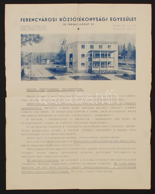 1935 Bp.IX., A Ferencvárosi Közjótékonysági Egyesület felhívása a szeg... https://www.darabanth.com/de/230-Fernauktion/230.0/Andere-Sammelgebiete/Dokument~200030/1935-BpIX-A-Ferencvarosi-Kozjotekonysagi-Egyesulet-felhivasa-a-szegenyek-megsegiteser~II1031258