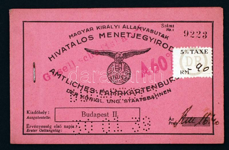 1939 Bp., Az IBUSZ, a Magyar Királyi Államvasutak hivatalos menetjegyi... https://www.darabanth.com/de/230-Fernauktion/230.0/Andere-Sammelgebiete/Dokument~200030/1939-Bp-Az-IBUSZ-a-Magyar-Kiralyi-Allamvasutak-hivatalos-menetjegyirodaja-altal-kiadott-menet~II1034033