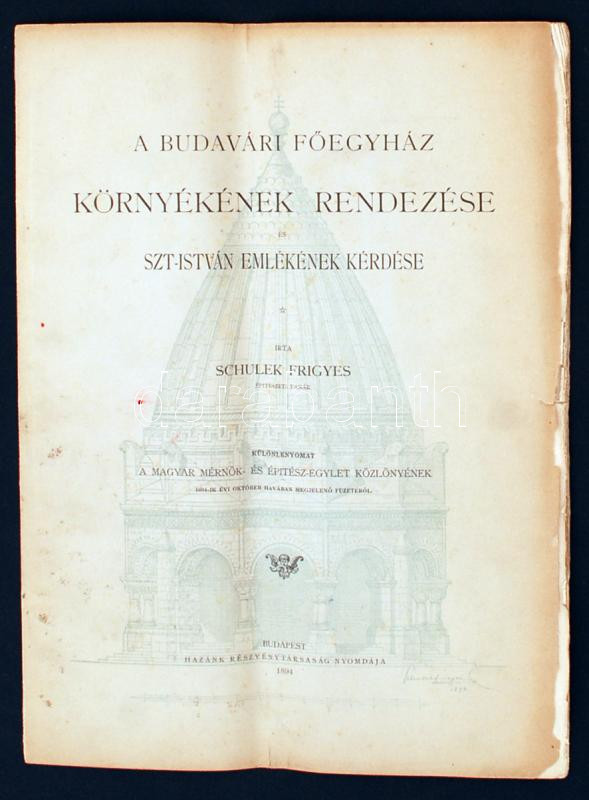 1894 Bp., A Budavári Főegyház környékének rendezése Szent István emlékének kérdése, írta Schulek Frigyes, a Magyar Mérnök- és Építész-Egylet Közlönyének különlenyomata, 15p