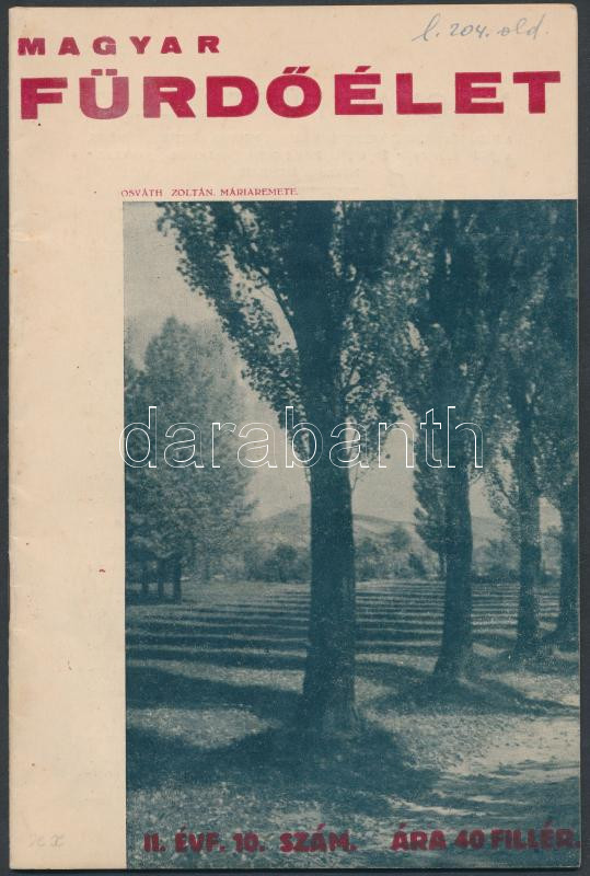 1932 Bp., A Magyar Fürdőélet II. évfolyamának 10. száma, belsejében fo... https://www.darabanth.com/de/230-Fernauktion/230.0/Andere-Sammelgebiete/Drucksachen~200004/1932-Bp-A-Magyar-Furdoelet-II-evfolyamanak-10-szama-belsejeben-fotokkal-illusztracio~II1031781