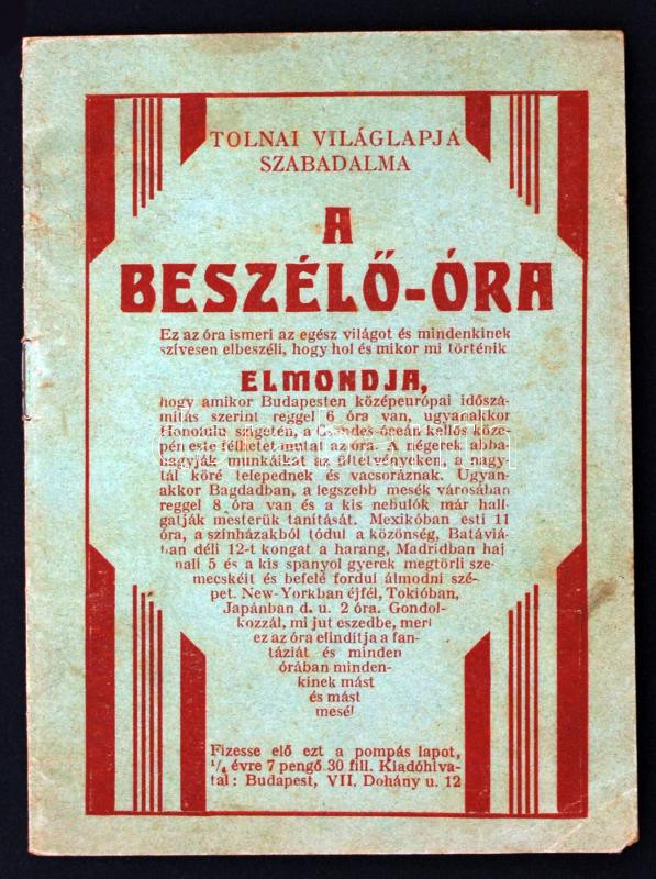 cca 1910 A Tolnai Világlapjának szabadalma, a beszélő óra(világóra), r... https://www.darabanth.com/de/230-Fernauktion/230.0/Andere-Sammelgebiete/Drucksachen~200004/cca-1910-A-Tolnai-Vilaglapjanak-szabadalma-a-beszelo-oravilagora-rajta-a-Beretvas-Paszti~II1032760