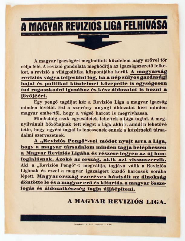 cca 1930 A Magyar Revíziós Liga felhívása, a nemzeti öntudat növelésér... https://www.darabanth.com/de/230-Fernauktion/230.0/Andere-Sammelgebiete/Drucksachen~200004/cca-1930-A-Magyar-Revizios-Liga-felhivasa-a-nemzeti-ontudat-novelesere-es-a-revizios-ce~II1035585