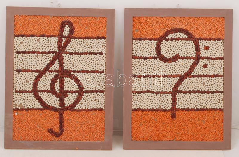 Beschreibung: 2 db bab- és lencsekép: violinkulcs és basszuskulcs, falra akasztható keretben, 38×28 cm